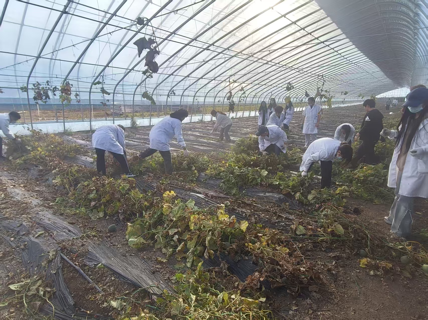 总经理刘英奎就生态园的产销运营模式及香瓜立体栽培、嫁接育苗等核心技术作了详细阐述,并分享了关于现代农业发展的先进经营理念。随后,赵悦一行,深入劳动实践现场——学生分组协作,在藤蔓间有序开展作业:修剪缠绕枝蔓、清理枯败秧叶、搬运秧苗,忙而不乱。尽管手套沾满泥土,汗水浸湿脸颊,但没有一人停下手中的劳动。望着眼前焕然一新的瓜园,师生们由衷体会到“劳动最光荣”的真正含义,辛勤的汗水最终化为收获的喜悦。