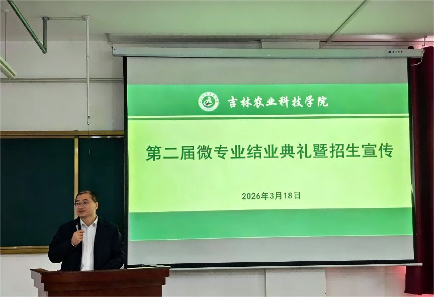 典礼上,胡宇祥处长宣读了《吉林农业科技学院关于准予第二届微专业学生结业的决定》,赵悦副校长为来自“数字电商运营与管理”“园林花木鉴赏与应用”“自媒体内容创作”三个微专业的结业学生代表颁发证书并合影留念。随后,彭可忆、魏铭、刘璐嘉三位同学作为优秀学员代表依次发言,分享了在微专业学习中的跨学科体验、实践收获与成长感悟,充分展现了第二届微专业学生的学习成果与精神风貌。